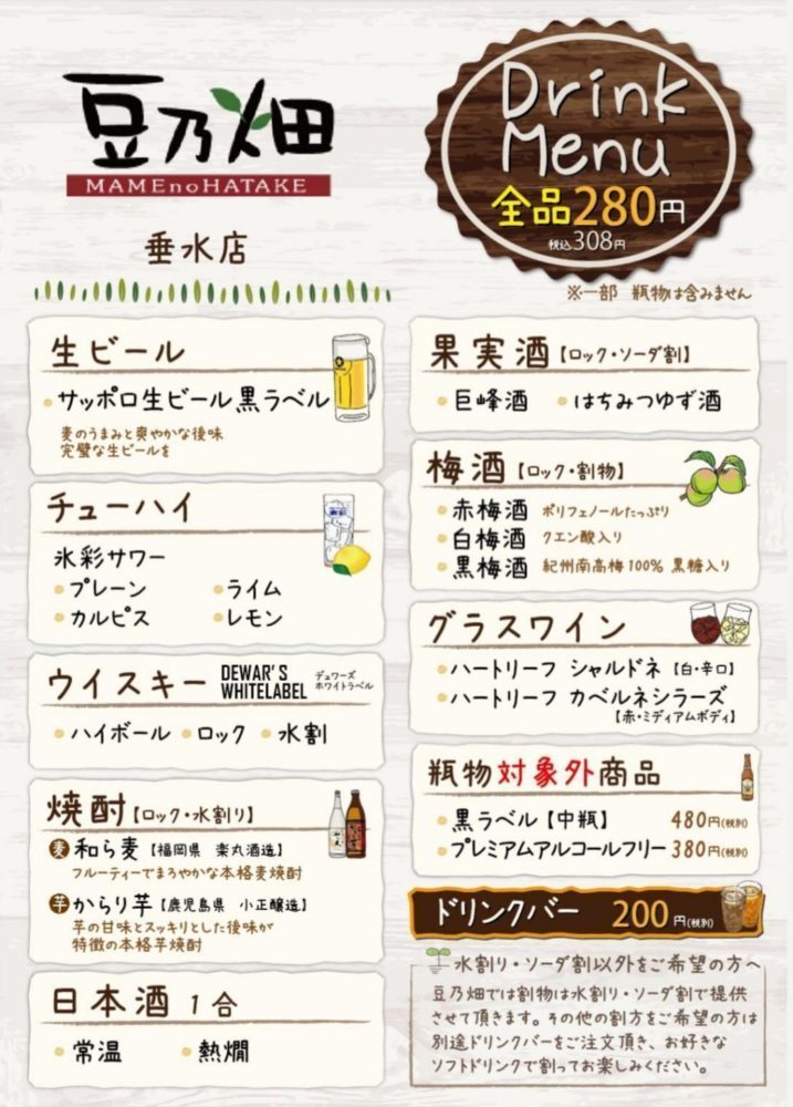 ※ドリンクバーをつける場合はプラス200円(税抜)アルコールメニュー