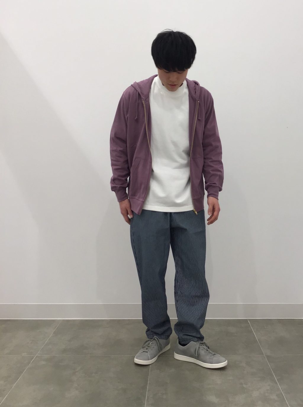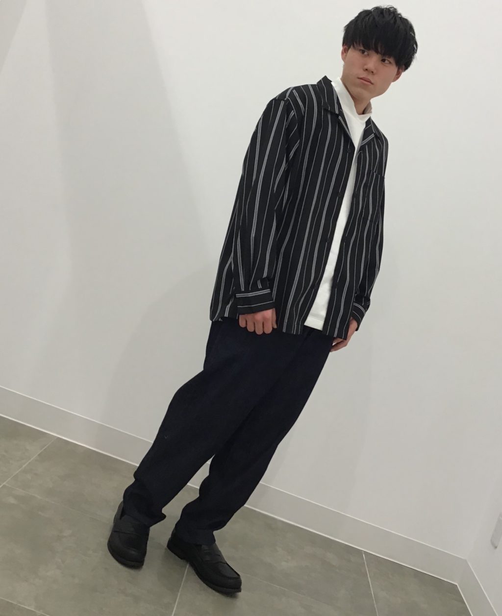 オススメのヒッコリー柄をスタッフに着用してもらいました!