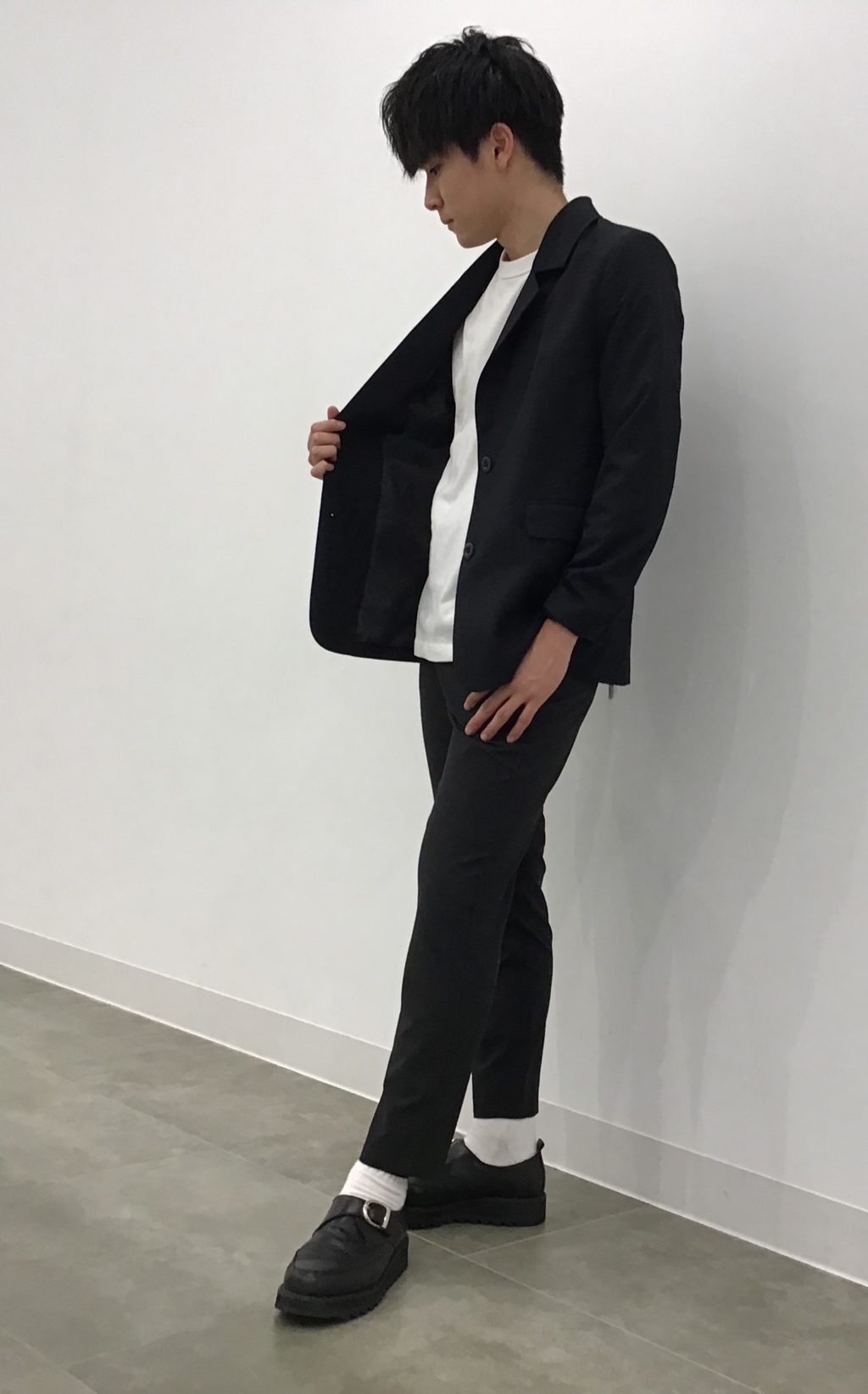 上下黒のセットアップに白T!!