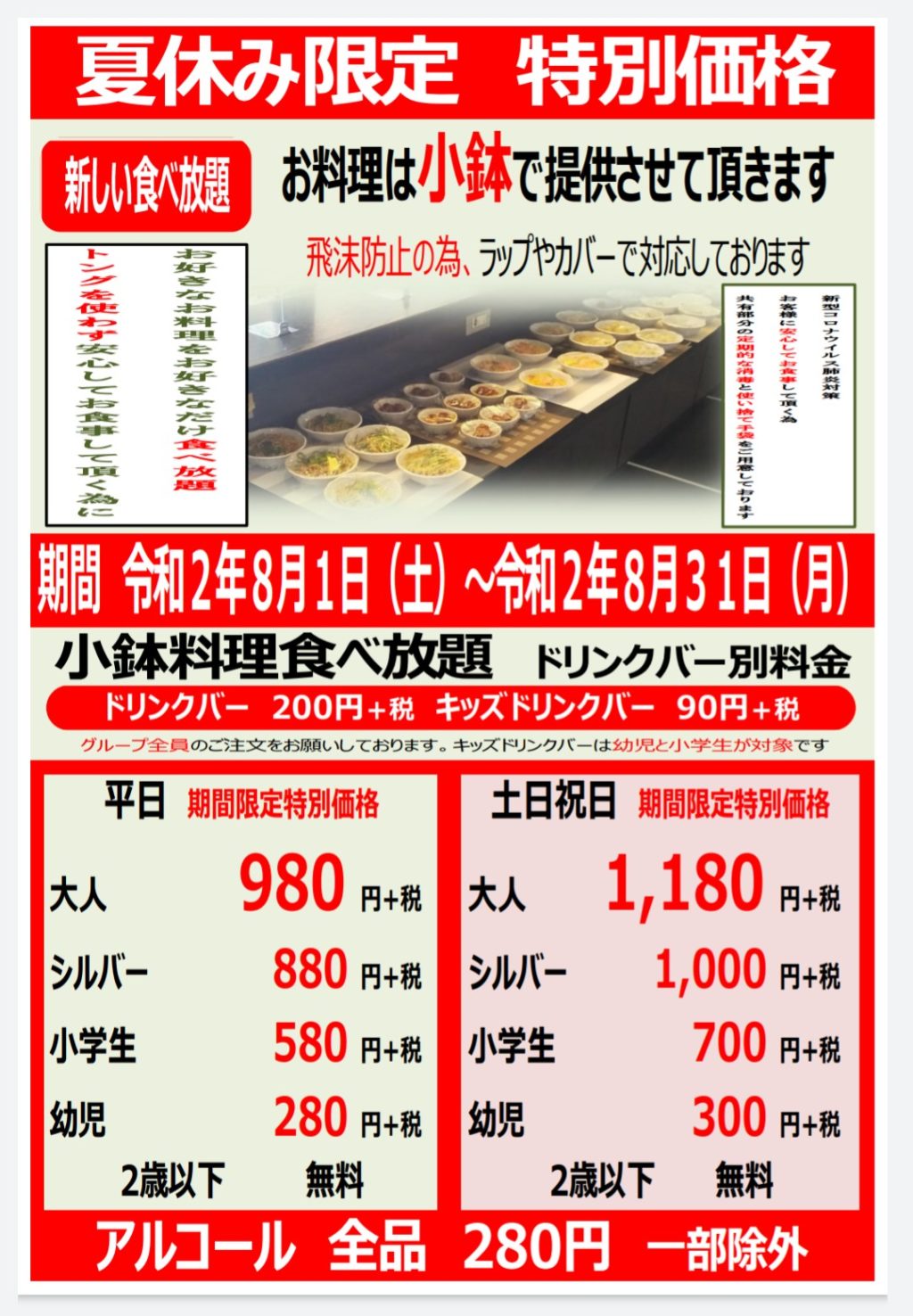 ※ドリンクバーのご利用はグループ全体でお願い致します。