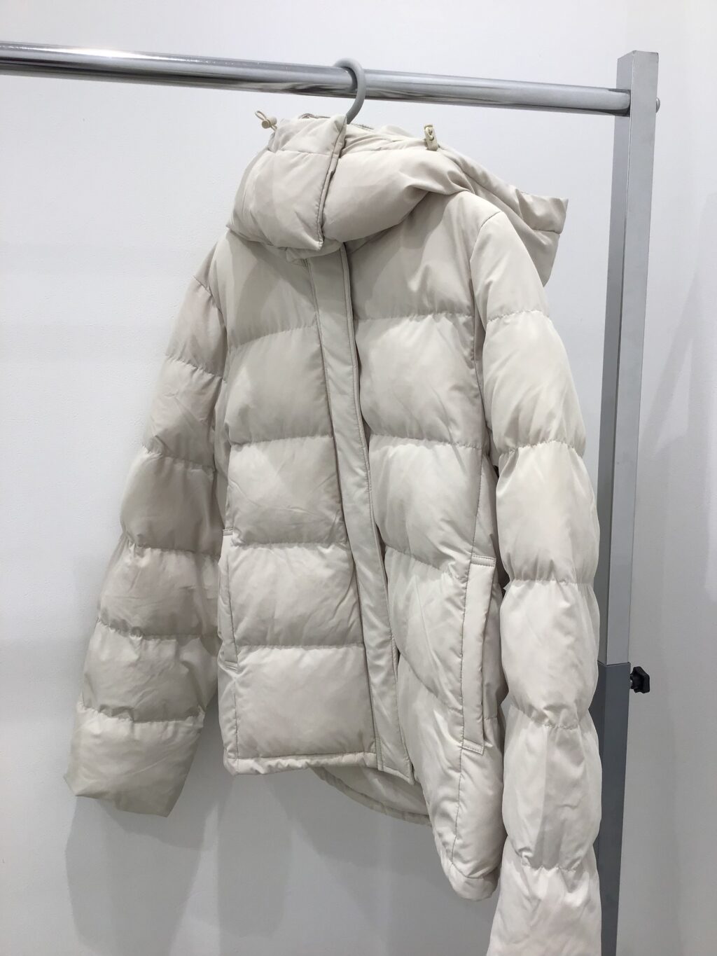 フードを外しボリューム感のあるネックを立たせて顔周りを華やかに、小顔効果も期待できます!