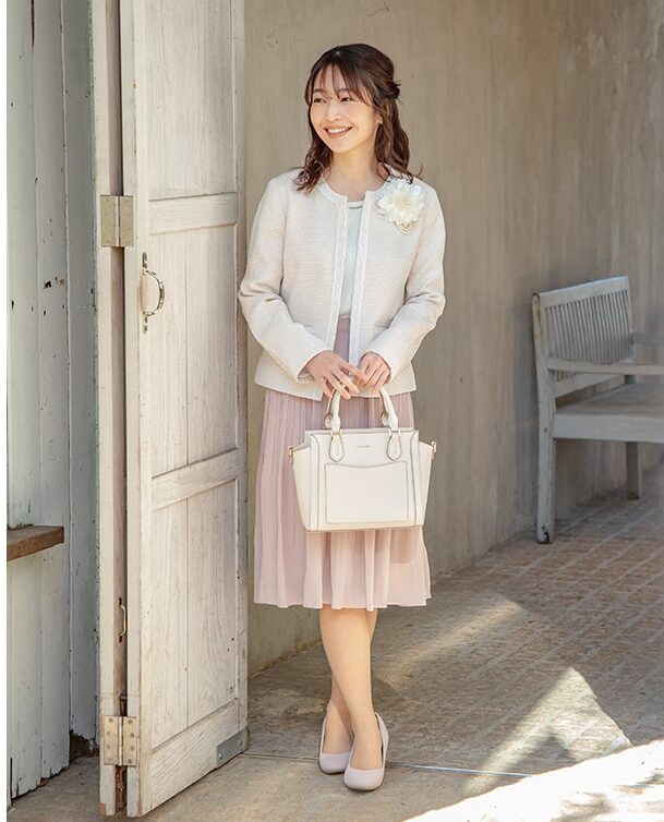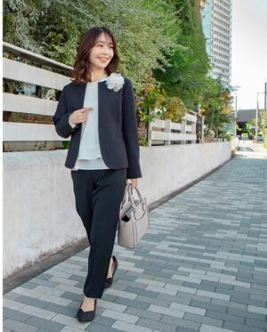 セレモニーの為だけにお洋服の新調はちょっと… という方も多いと思いますが、このように組み合わせを変えてお仕事や学校行事など普段使いも可能です◎