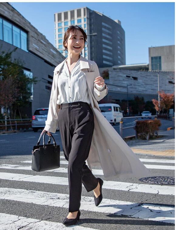 きちんと感のあるセンタープレス入りで、脚をきれいに見せてくれます。