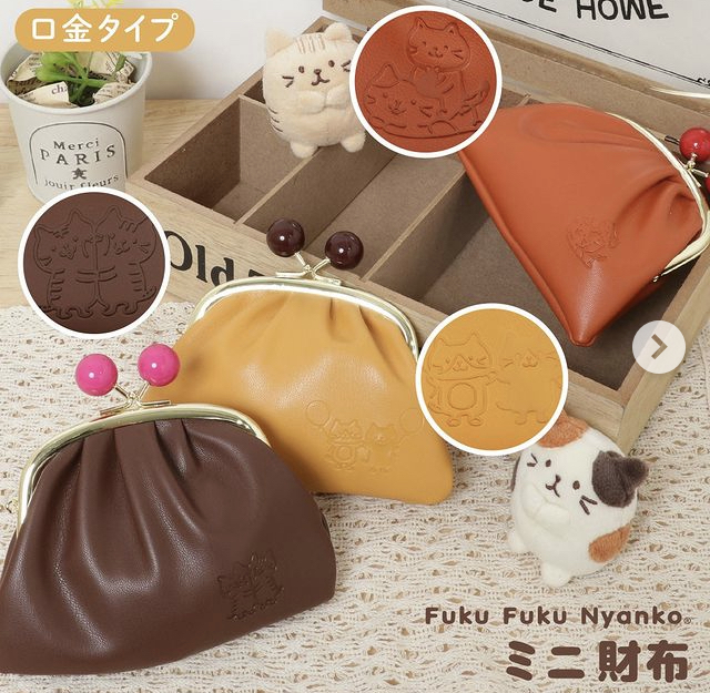 合皮ににゃんこの型押しが大人かわいい。