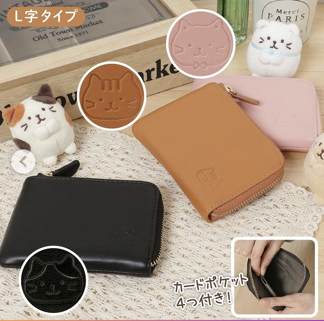 出し入れがしやすいL型のファスナー、4つのカードポケットなど小さいながらも機能はバッチリ。散歩やちょっとした外出、キャッシュレス派の方のミニ財布にもおすすめ。