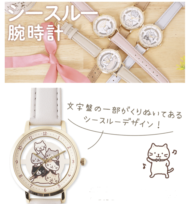 おしゃれな時計に見えて、文字盤をよく見るとかわいいにゃんこが!というギャップも楽しい♪