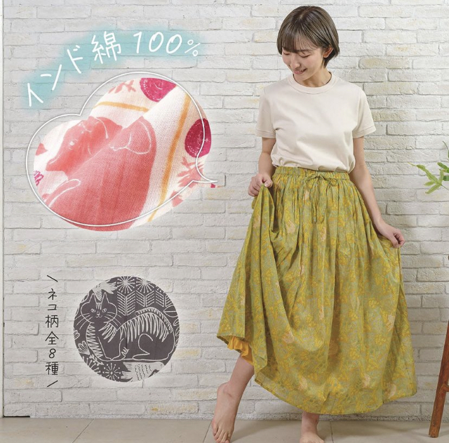 ネコプリントスカート ¥2500(税込)1F[ライフスタイル・雑貨]HAPINS