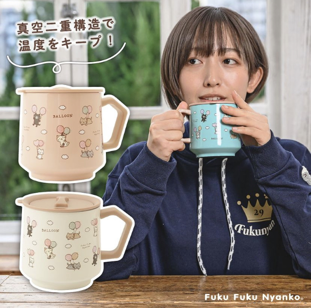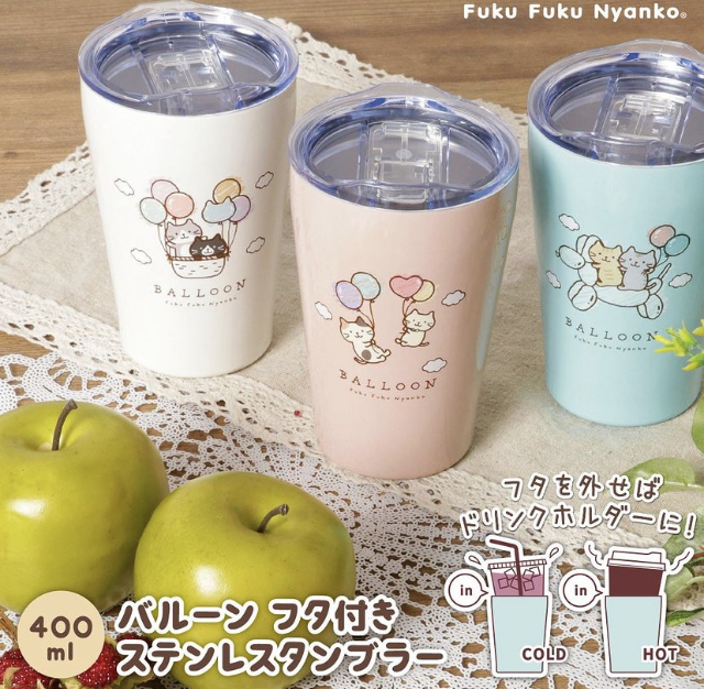 バルーンで浮かぶ「ふくふくにゃんこ」プリントデザイン。