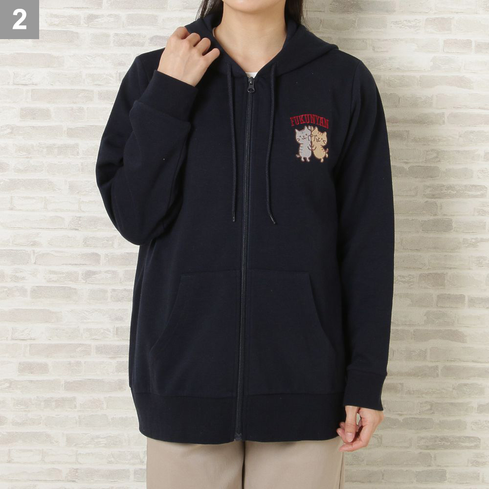 FukuFukuNyankoのなかよしキャラクターのペアが刺繍されたパーカー。