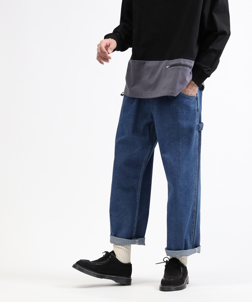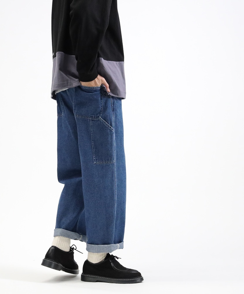 ¥4,400(税込)デニム素材を使用した、ワイドシルエットのペインターパンツ。