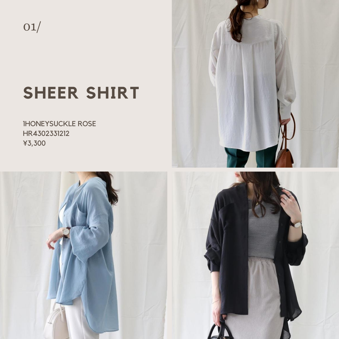 シアーシャツはジャストサイズで着こなすと肌感が強調されやすいので、