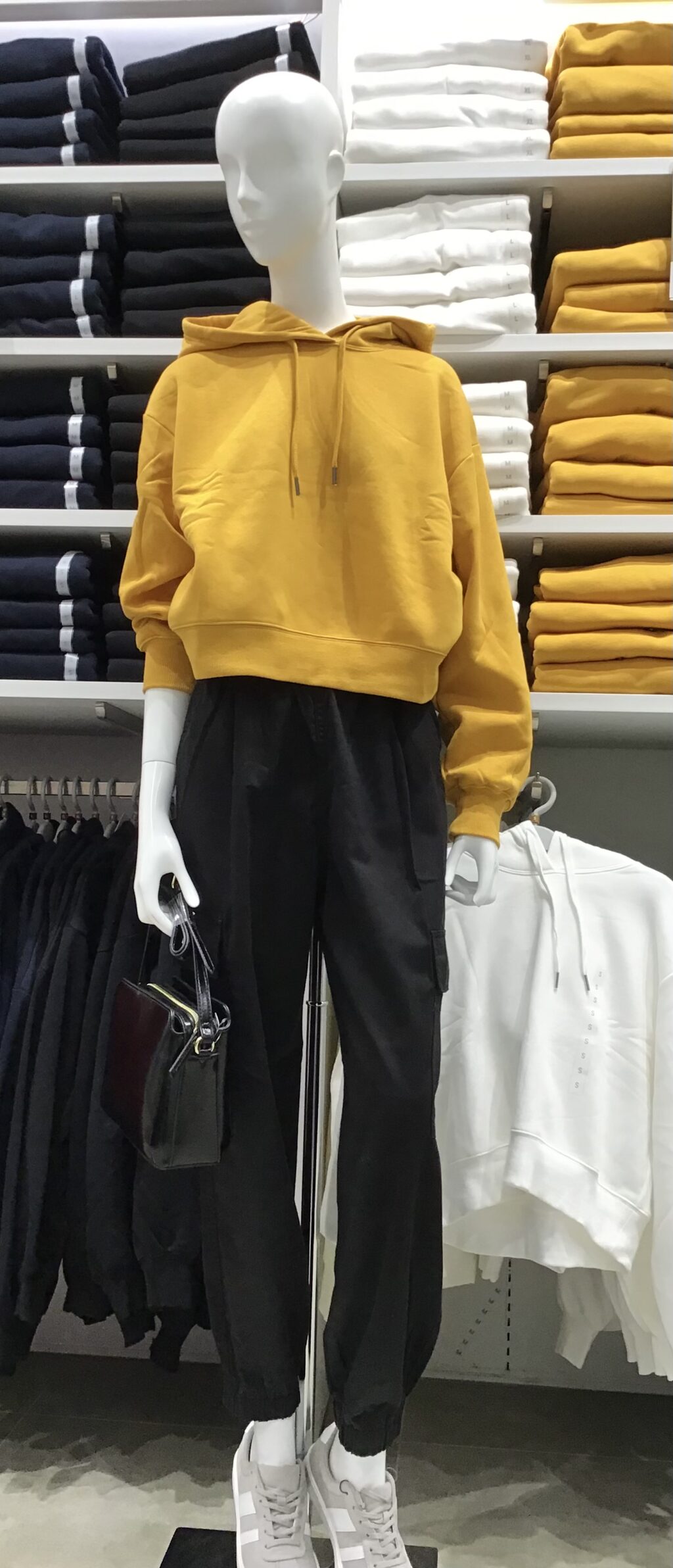 クロップド丈なのでハイウエストのボトムスとも相性が良く、