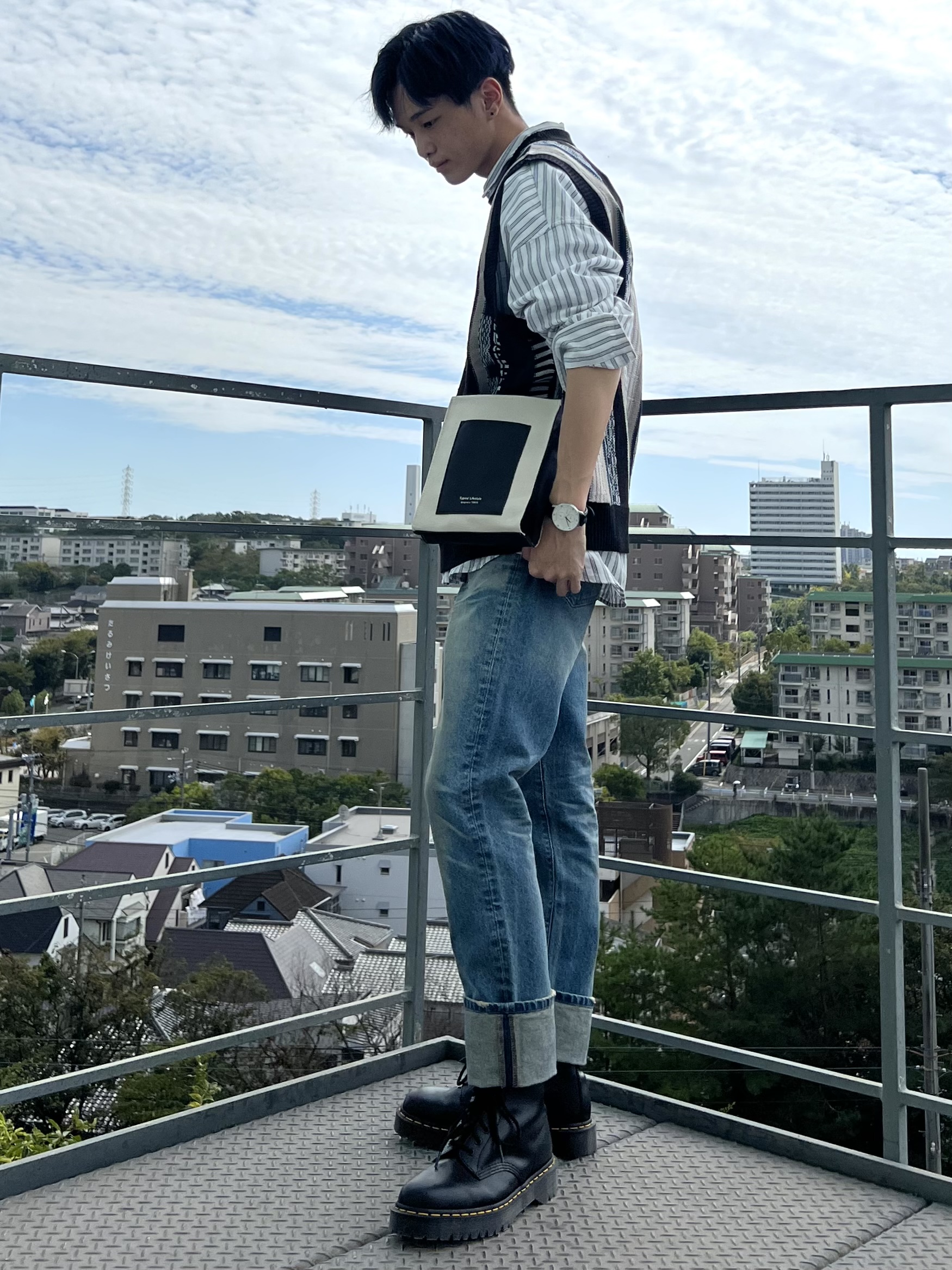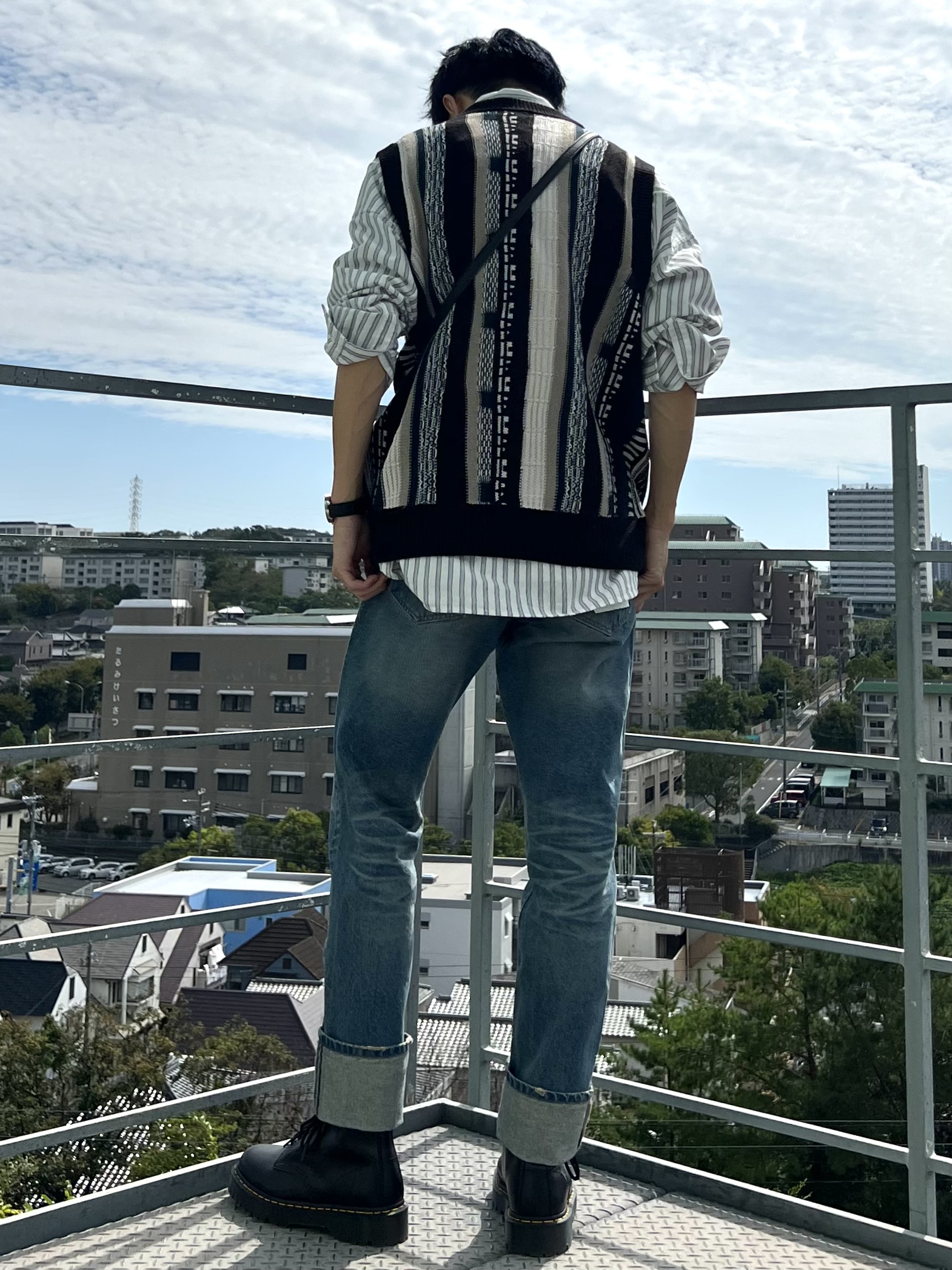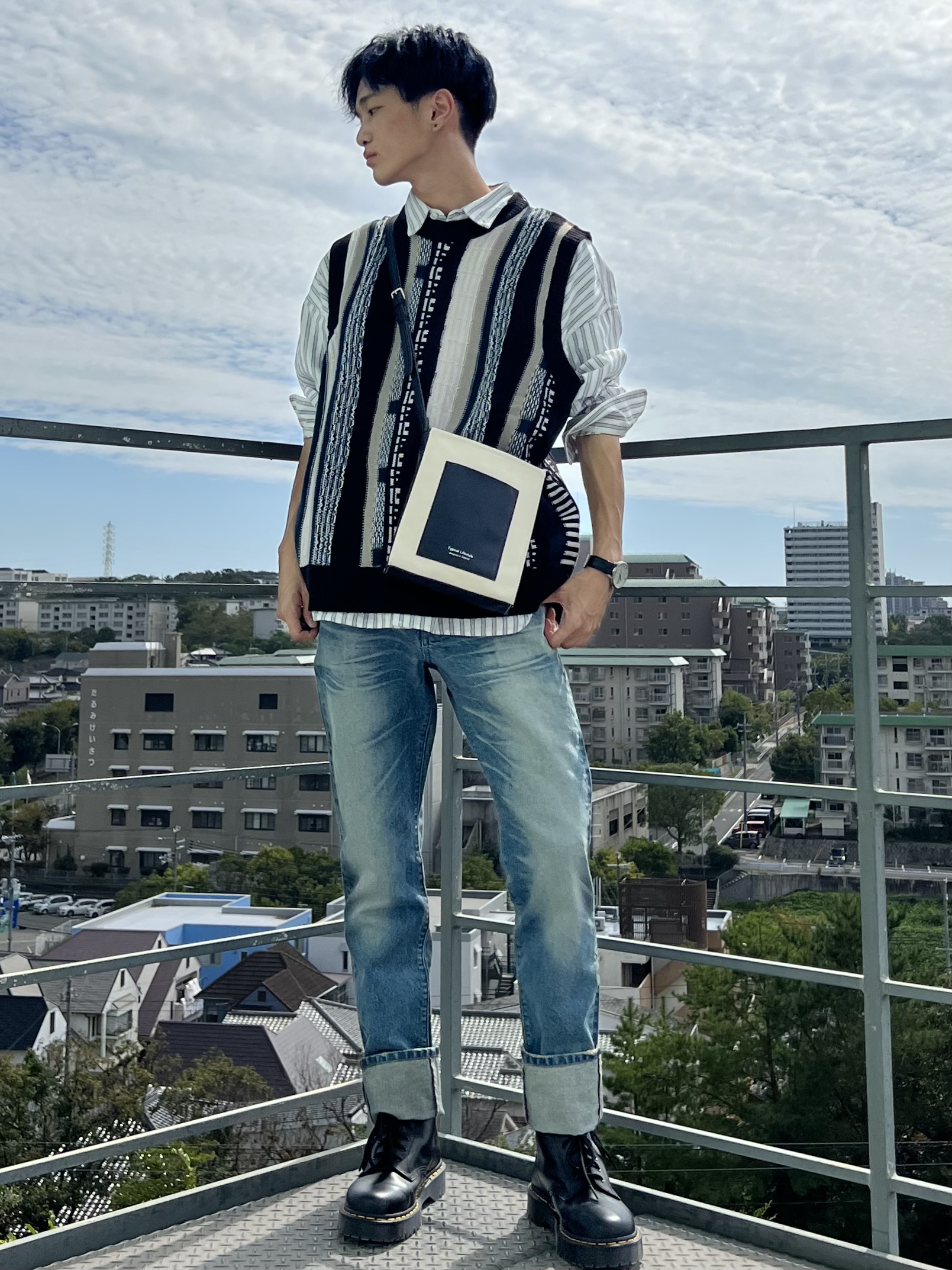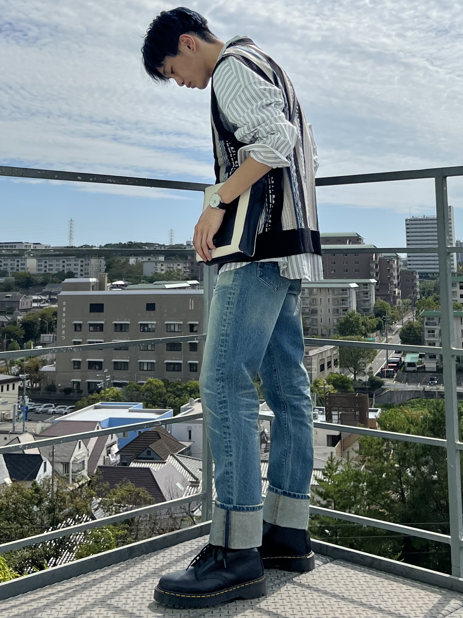 メンズ 総柄ニットベスト Lサイズ/メンズ ストライプシャツ Lサイズ/ 和紙デニム 28インチ