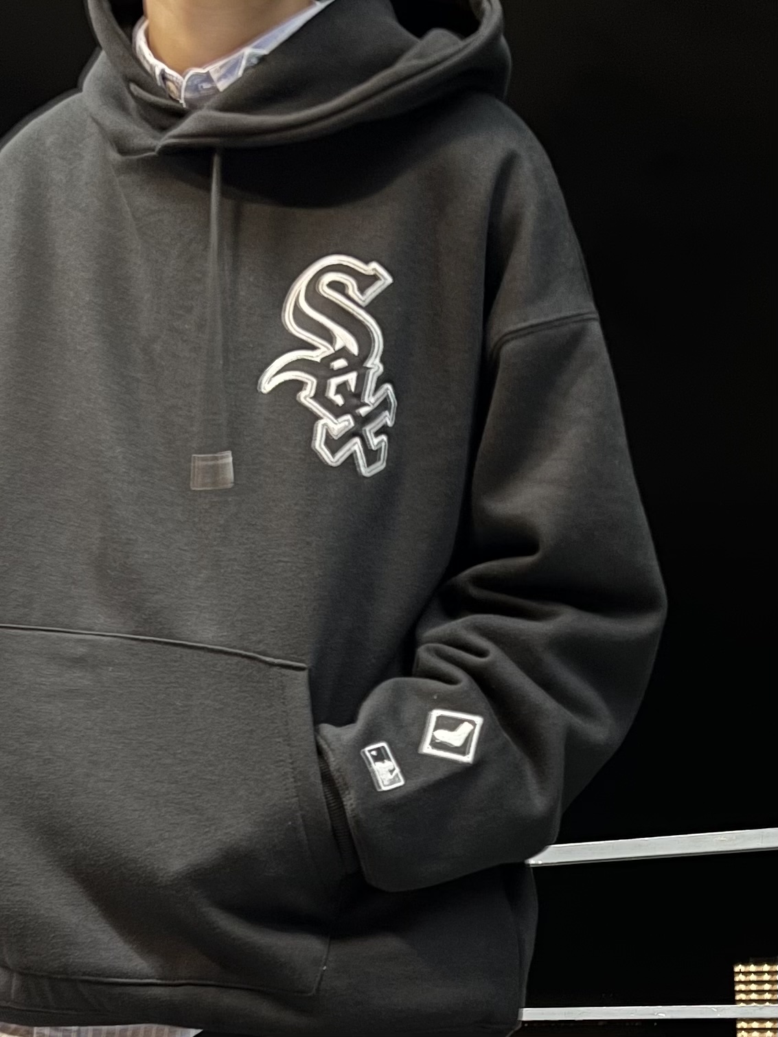 今期トレンドの一つのメジャーリーグベースボールのビッグシルエットプルパーカー。