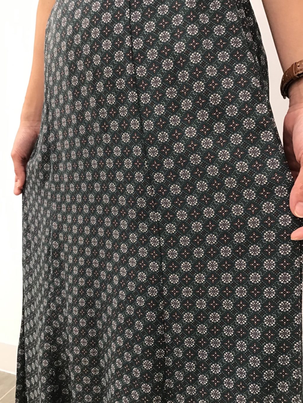 トップスがシンプルでも、コモン柄がオシャレに映えて