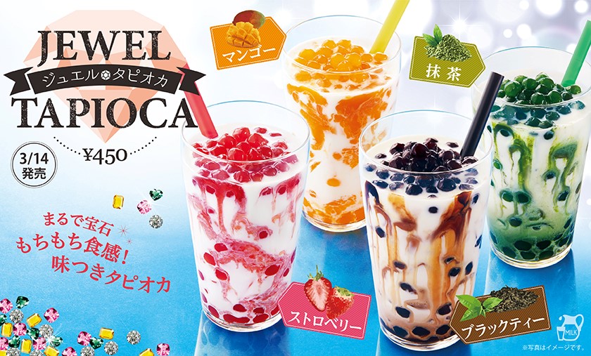 牛乳で割ったジュエルタピオカドリンクも販売中です…